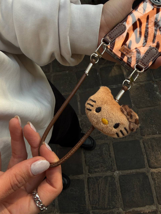 همراه با آویز بند چرمی کیتی ، به قاب متصل است و قابلیت جداسازی دارد